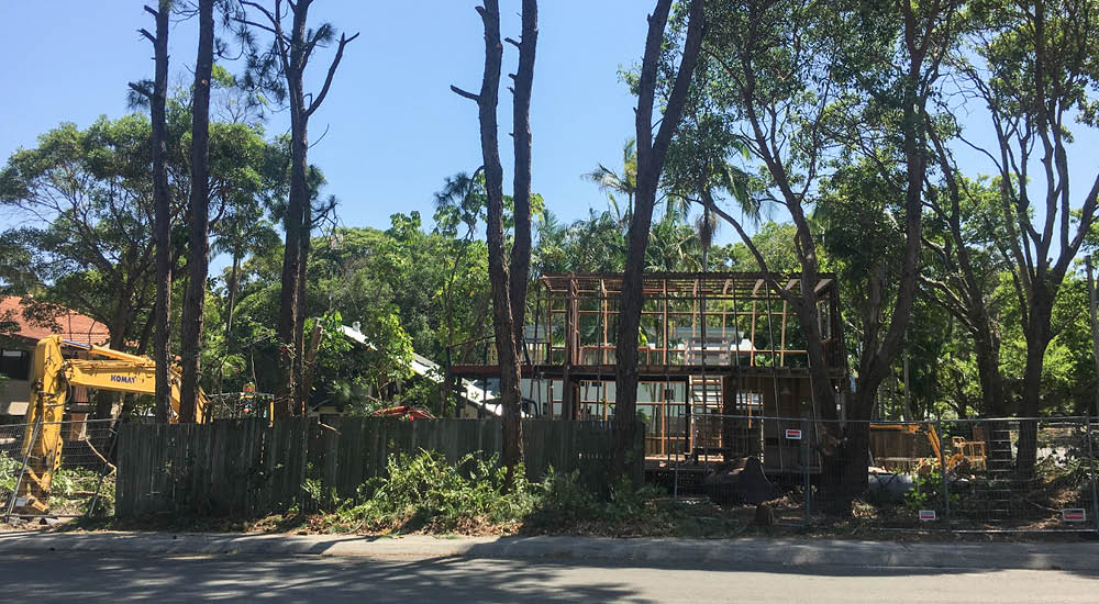 House demolition, tree removal and land clearing at Sunshine Beach on the Sunshine Coast, clearing the land for a new property.